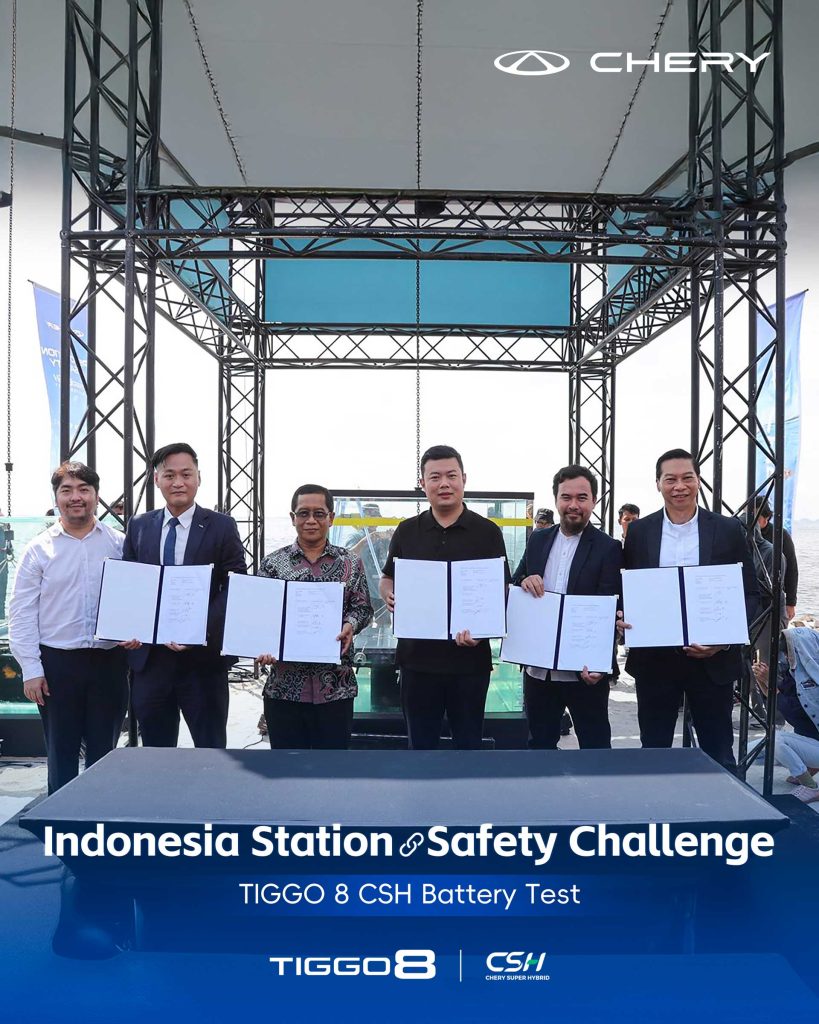 El Sr. Heri Prabowo, Jefe de la Subdirección de Pruebas de Tipo de Vehículos Motorizados del Ministerio de Transporte, y el Sr. Christian Andersen, Notario, se unieron a representantes de 80 importantes medios de comunicación y KOL de la industria para presenciar la batería híbrida de alto rendimiento de Chery, que demuestra una seguridad y confiabilidad excepcionales en condiciones de humedad extrema.